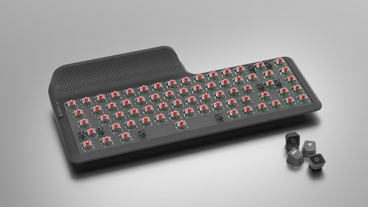 *Brushed metal top plate and curved surface keycaps.